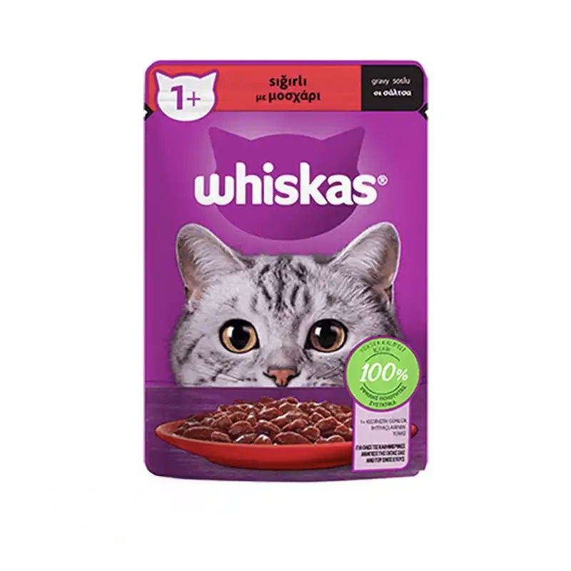 خانهگربهغذای گربهغذای تر گربه پوچ گربه ویسکاس مدل گوشت گاو۸۵g